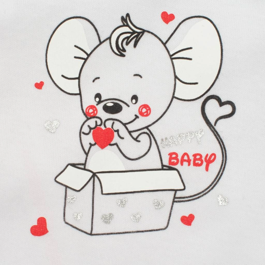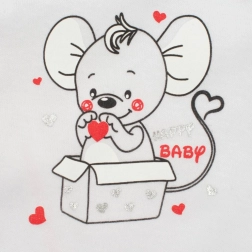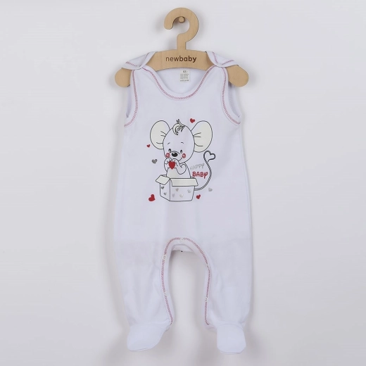 Adorable grenouillère pour bébé New Baby Mouse, appréciée pour son tissu doux en 100 % coton, sa fermeture à boutons-pression sur l’épaule et à l’entrejambe, et son motif souris ludique. Marque tchèque misant sur la qualité et le confort pour bébé.
