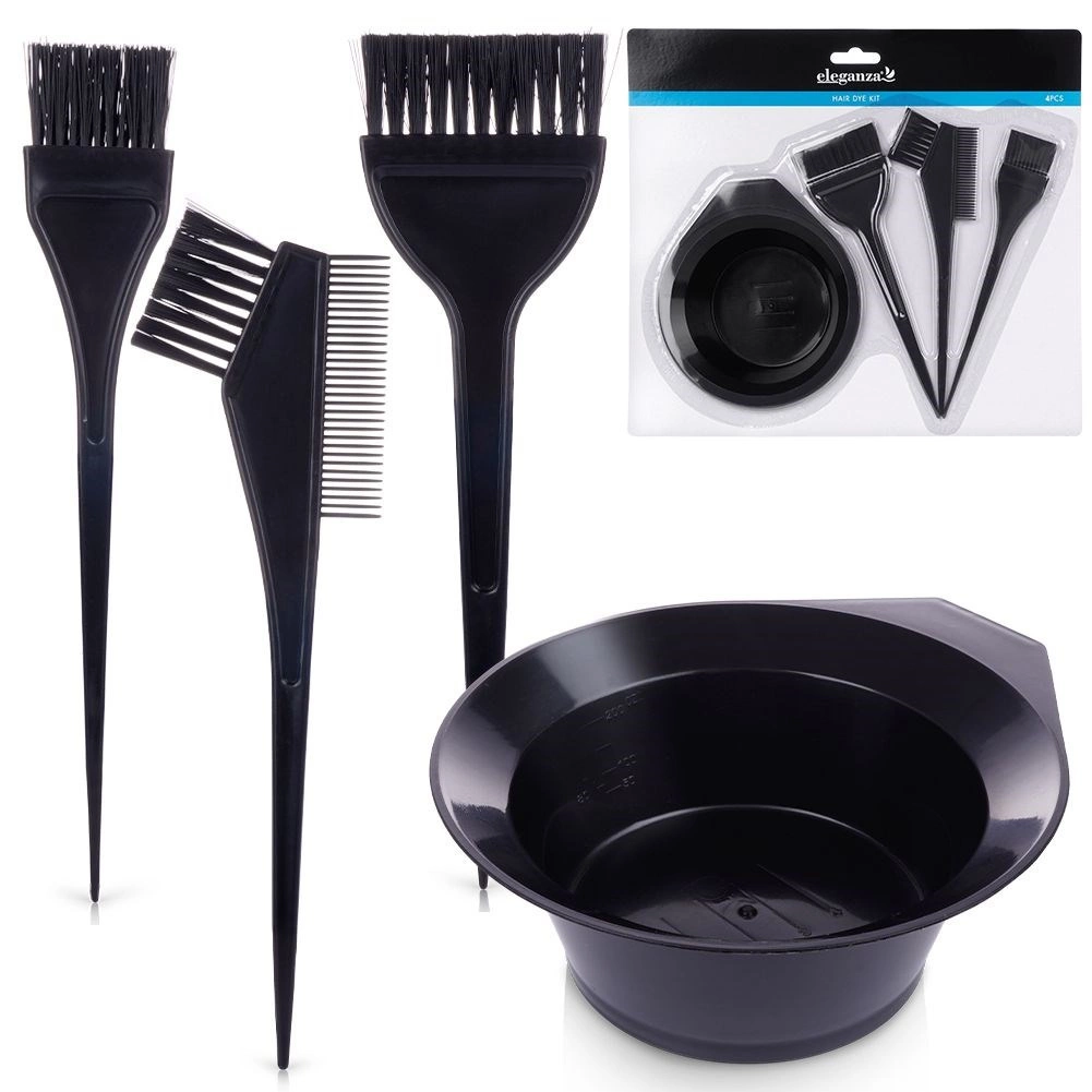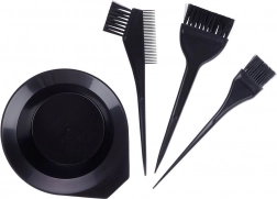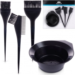 Kit complet de coloration des cheveux pour un usage domestique et professionnel : bol avec graduation et trois pinceaux d’application dont un pinceau avec peigne. Conception en plastique résistant aux produits chimiques, manches pointus pour séparer les mèches avec précision et réutilisation grâce au nettoyage facile.