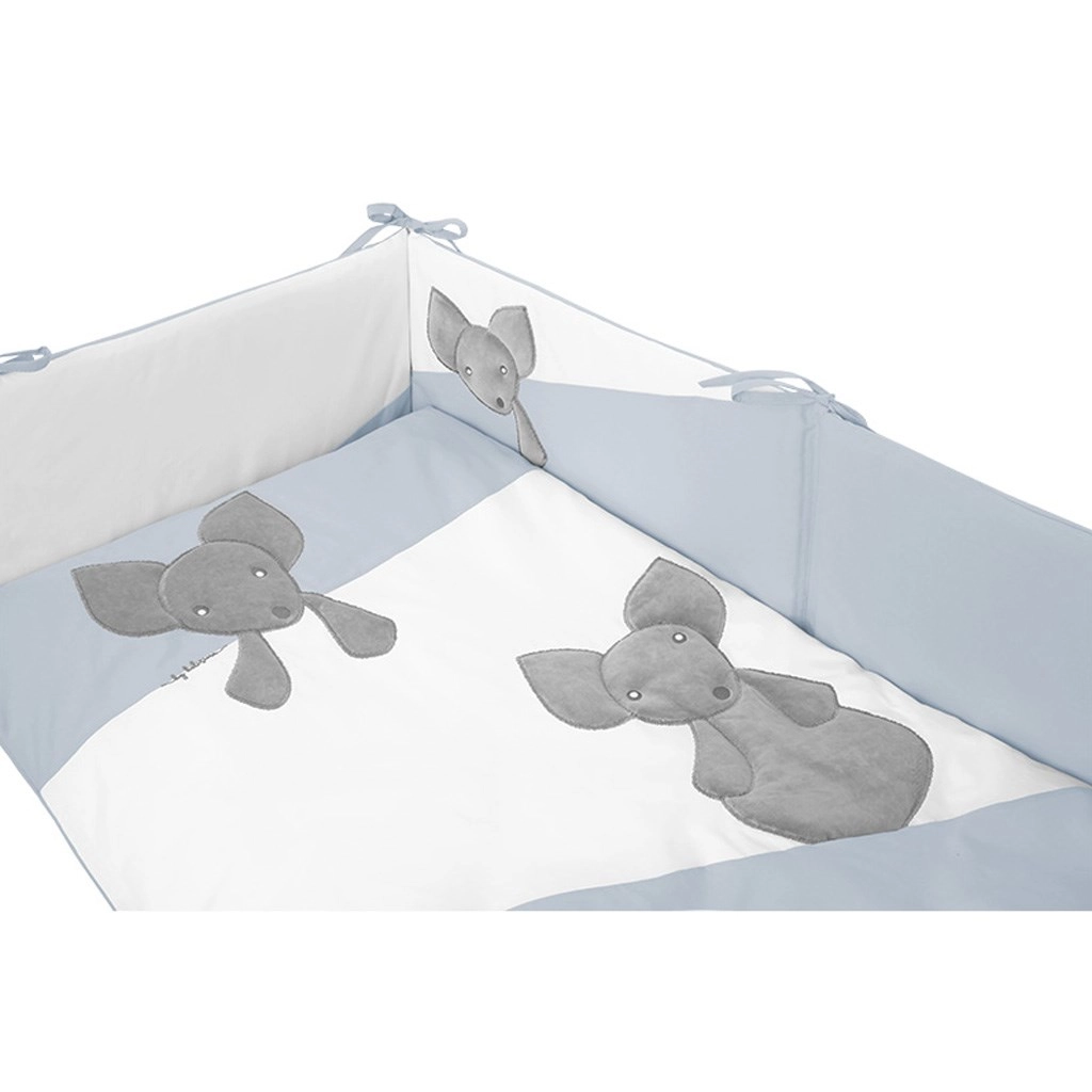 Les tons bleus apaisants et le motif adorable de petite souris s’adaptent à la plupart des chambres d’enfants. Le tour de lit au rembourrage moelleux améliore la sécurité dans le lit et tient fermement grâce à ses liens. Les fermetures éclair de sécurité sans tirettes et l’absence de boutons ou de pièces métalliques minimisent le risque de petits éléments détachables.