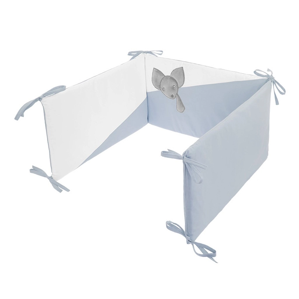 Le tour de lit rembourré de 180 cm protège le bébé des chocs contre les barreaux du lit et reste bien en place grâce à ses liens solides.