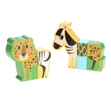 Les puzzles en bois Joyeux safari offrent aux enfants dès 2 ans une manière différente de s’amuser : chaque animal est composé de pièces massives avec aimants cachés qui s’assemblent en douceur. Les pièces peuvent être échangées entre les différents animaux pour créer de drôles d’« hybrides » qui stimulent l’imagination et la curiosité.