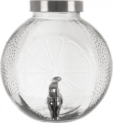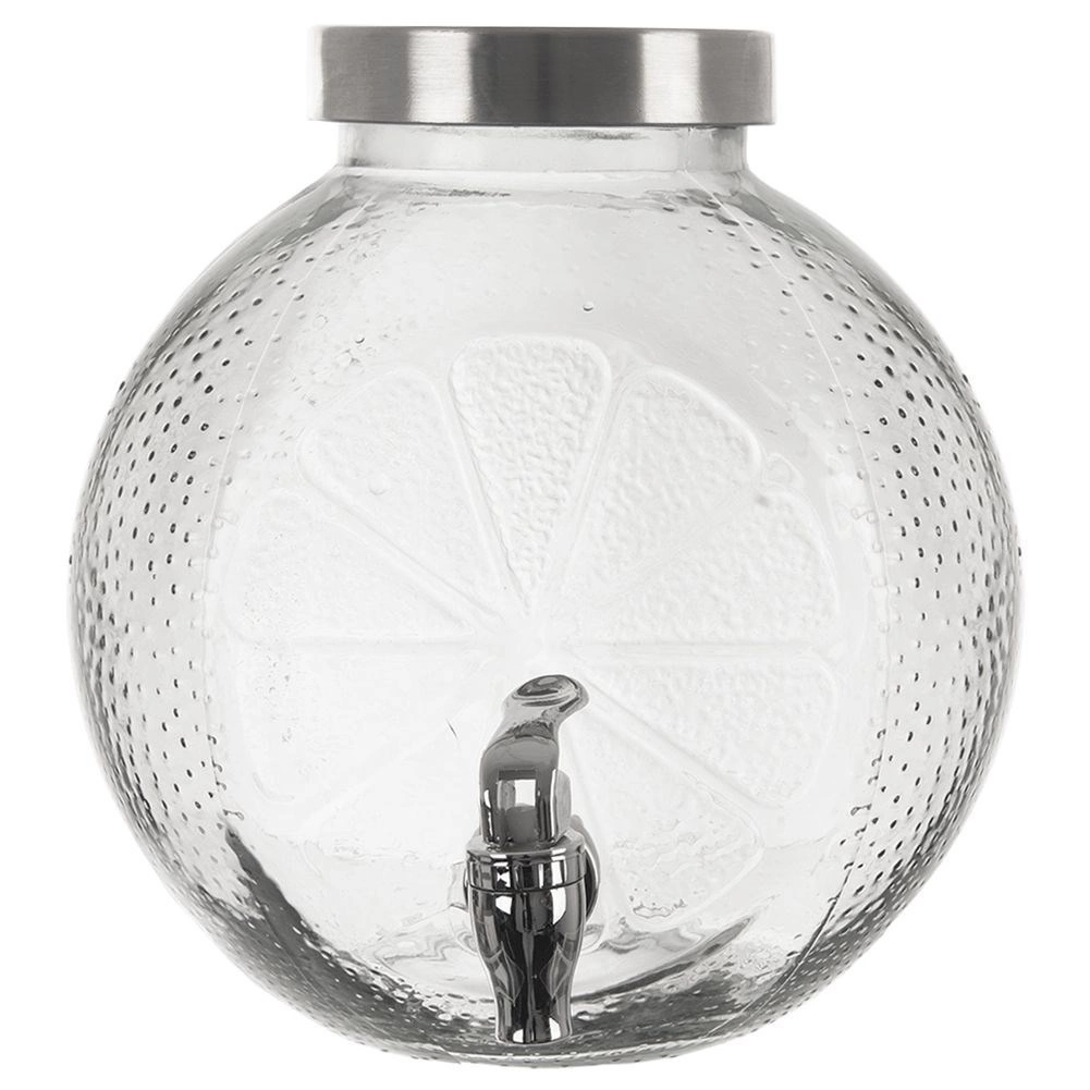 Ce distributeur de grande capacité avec robinet sert avec élégance eau aromatisée, citronnade et punch rafraîchissant. Le verre épais et de qualité avec relief de tranches d’agrumes est sûr pour les aliments et assure une apparence attrayante ainsi qu’une grande solidité. Le couvercle métallique vissé protège le contenu des saletés et des insectes, tandis que le robinet métallique permet un service pratique sans éclaboussures.