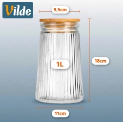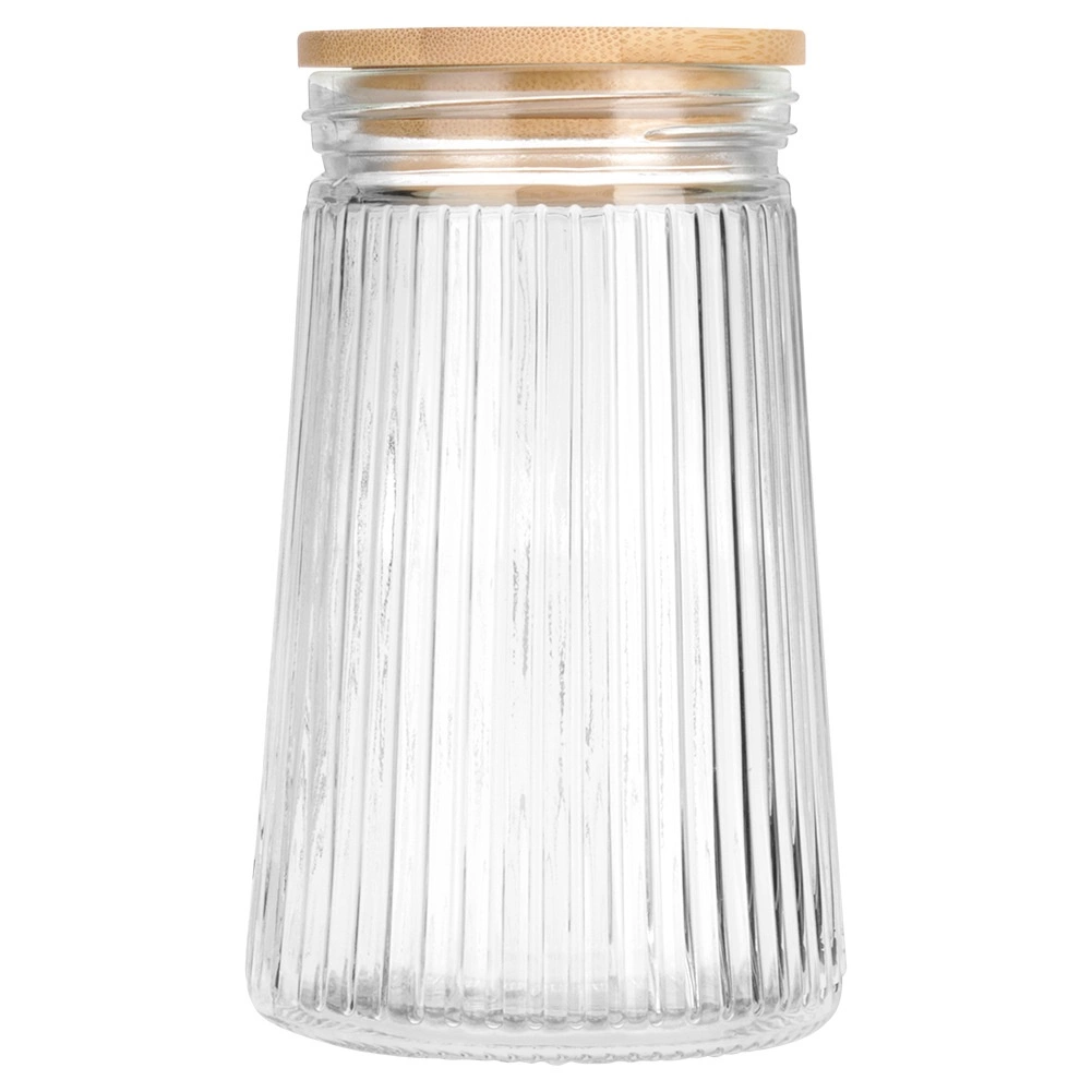 Bocal alimentaire pratique et design pour un usage quotidien en cuisine. Le verre borosilicaté résiste aux chocs thermiques et la surface nervurée apporte un look moderne ainsi qu’une meilleure prise. Le couvercle en bambou avec joint en silicone ferme le récipient de manière fiable pour préserver plus longtemps le parfum et la croustillance des ingrédients.