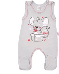 L’ensemble est conçu dans un doux coloris gris avec un liseré coloré et un grand imprimé souris qui apporte une touche ludique à la tenue. Le produit provient de la marque tchèque NEW BABY, qui met l’accent sur la qualité et le confort des tout-petits.