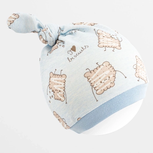Adorable bonnet pour bébé New Baby Biscuits avec petit nœud et imprimé intégral de biscuits, parfait pour le quotidien. Confectionné en 100 % coton, doté d’une large bordure qui ne serre pas et doux au toucher, il convient même à la peau sensible des nourrissons. Il tient parfaitement sur la tête et s’accorde à merveille avec les vêtements de la collection Biscuits.