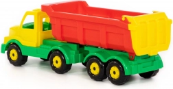 Camion en plastique coloré avec remorque de 58 cm offrant des heures de divertissement à la maison comme au bac à sable. Il possède une construction résistante, une benne basculante vers l’arrière et un panneau arrière mobile pour faciliter le chargement et le déchargement. Fabriqué avec la qualité Wader quality toys pour un jeu sûr et durable.