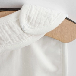 Le bavoir en mousseline élégant et pratique New Baby Elizabeth protège les vêtements de bébé lors des repas et de la salivation. Il est fabriqué en mousseline de coton 100 %, un tissu respirant, doux pour la peau et résistant aux lavages fréquents. Grâce à une fermeture à deux niveaux, il s’adapte facilement à la croissance de l’enfant.