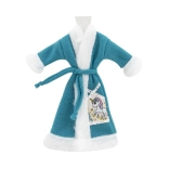 Le peignoir est réalisé dans un textile moelleux à léger duvet avec un liseré contrasté, pour « réchauffer » agréablement la poupée après le bain ou lors de la lecture du soir.