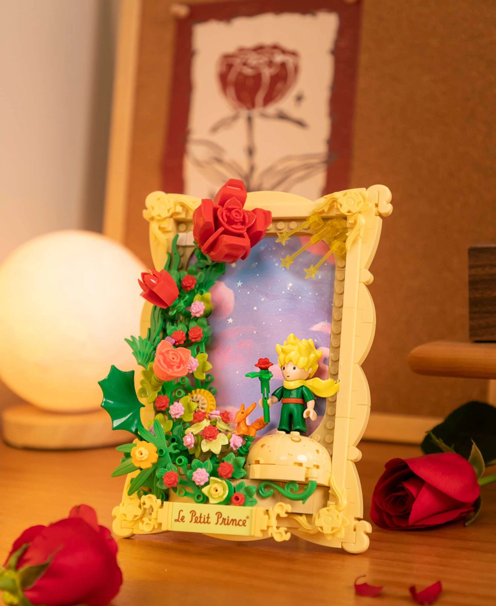Ce set de construction design transpose la poésie de l’histoire intemporelle en une décoration originale. Vous assemblerez une rose rouge remarquable aux pétales délicatement modelés, un cadre élégant et un socle avec l’inscription Le Petit Prince. Grâce au plastique ABS de qualité et à l’ajustement précis, la construction est fluide et le résultat stable – idéal sur une étagère, un bureau ou dans une chambre d’enfant.
