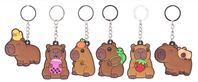 Adorable porte-clés à motif capybara de 5,5 cm. Disponible en plusieurs variantes, prix pour 1 pièce. Idée cadeau idéale et charmant accessoire pour les clés ou le sac à dos, pour les enfants dès 3 ans. Format compact, conception légère et plusieurs variantes au choix.