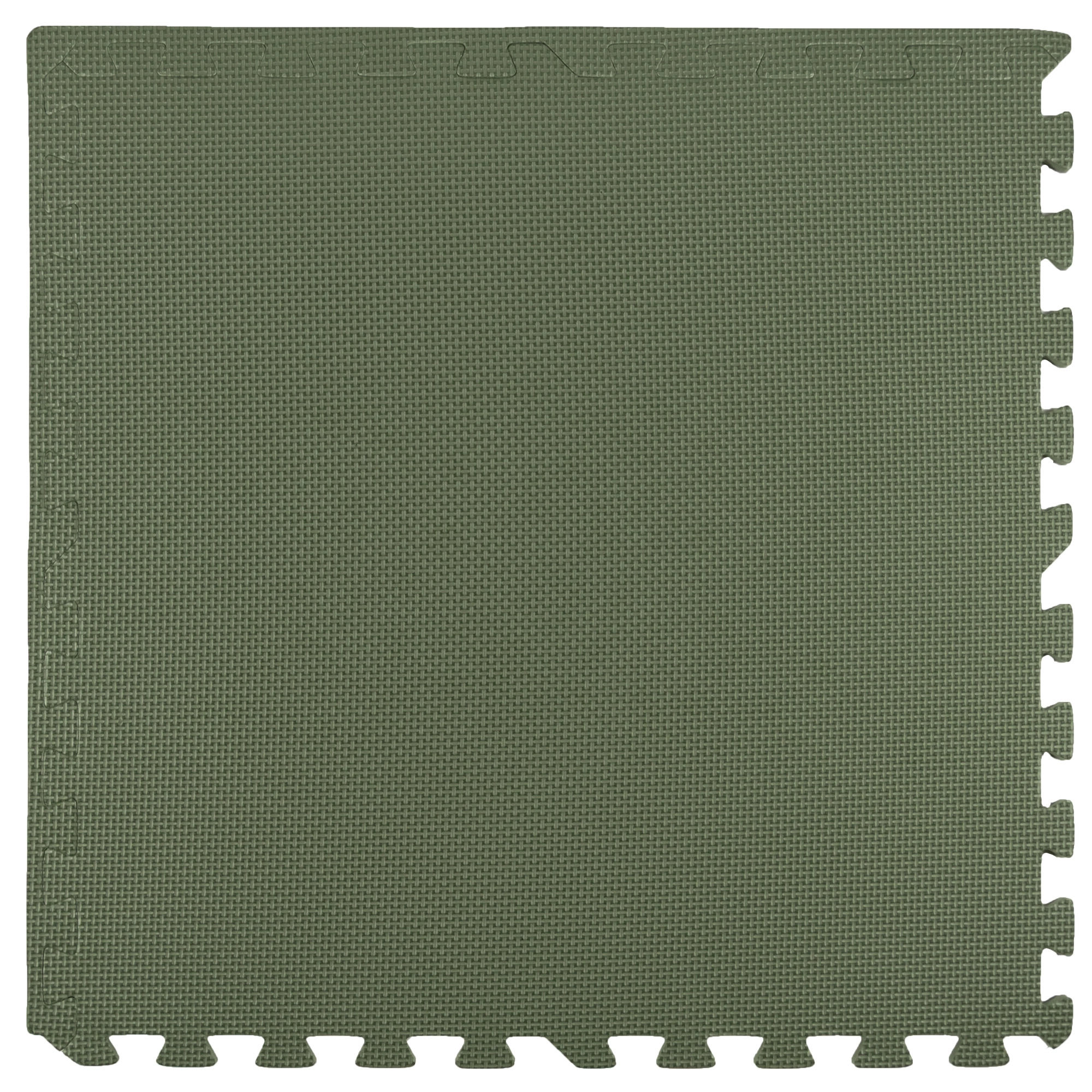 Tapis en mousse EVA doux et sûr de couleur kaki, protège du froid et amortit les chutes, il est imperméable, facile à nettoyer et évolue avec l’enfant. Le lot comprend 3 grandes pièces de 60 × 60 cm et 6 bordures, pouvant être assemblées en une surface plus grande ou en différentes formes. Conforme aux normes EN 71 et certifié CE.