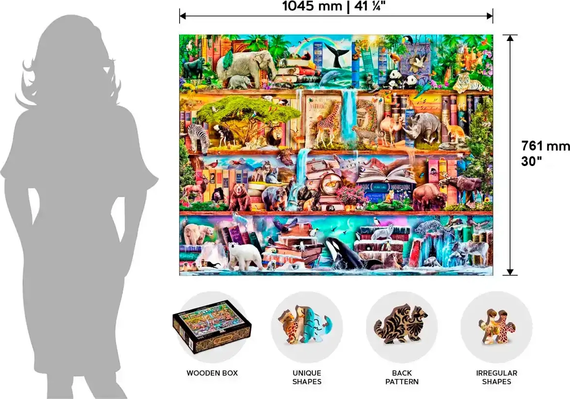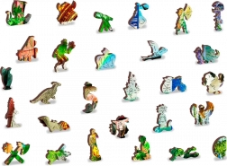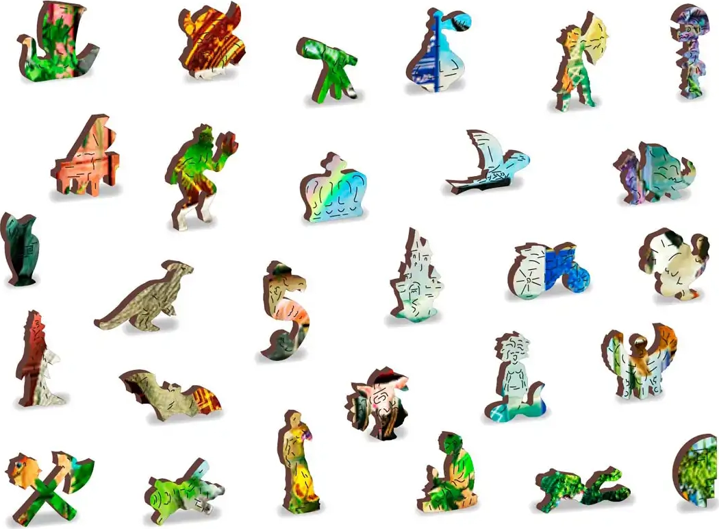 Entrez dans un monde de détails et de couleurs avec le motif Royaume animal incroyable. Le puzzle en bois en panneau HDF robuste (3–4 mm) séduit non seulement par sa belle illustration, mais aussi par ses pièces fantaisie intelligemment conçues, en accord avec le thème – animaux, objets et monuments célèbres. Certaines peuvent être dressées comme de petites figurines pour un effet encore plus marqué.