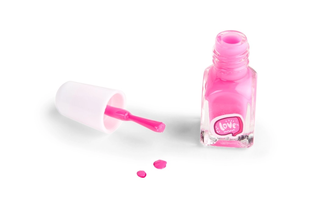 3× vernis à ongles, 3× applicateur, 1× gloss, 1× baume à lèvres, autocollants pour ongles