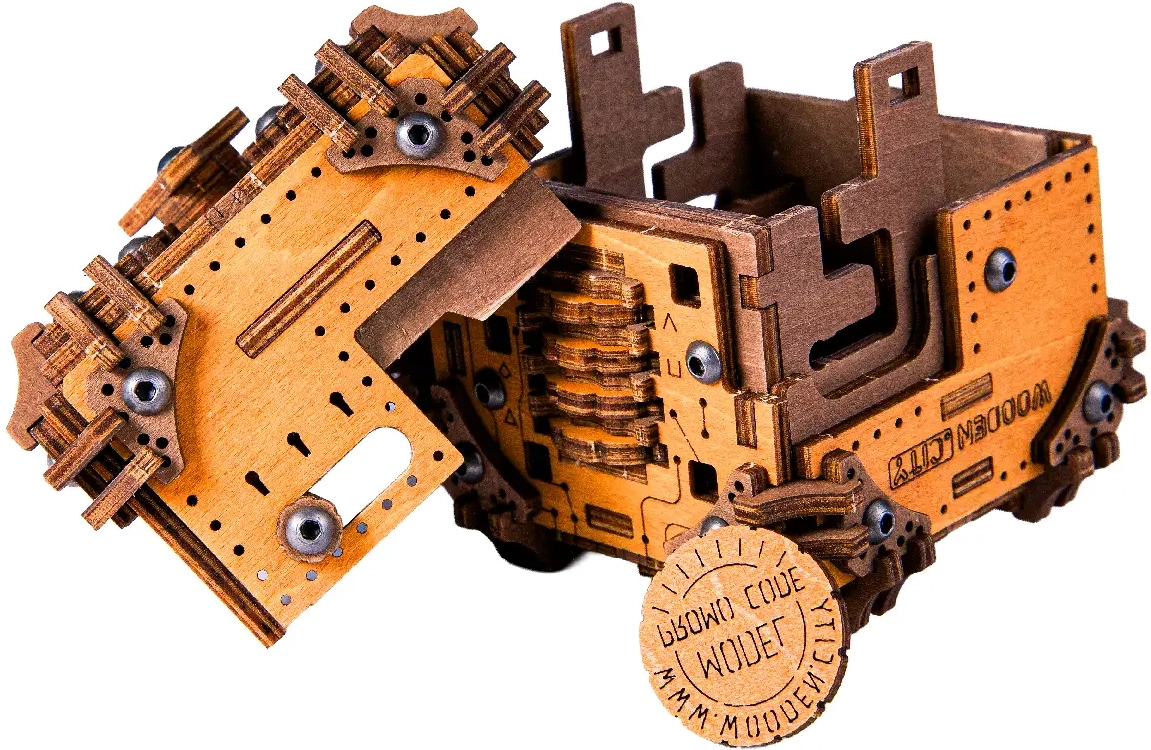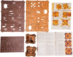 Le modèle est fabriqué en contreplaqué de bouleau écologique, les pièces s’assemblent sans colle ni outils, et la découpe laser garantit une construction fluide. Le temps de montage indicatif est d’environ 3 heures, et la difficulté 4,5/5 ravira les constructeurs expérimentés ainsi que les fans de jeux d’évasion.