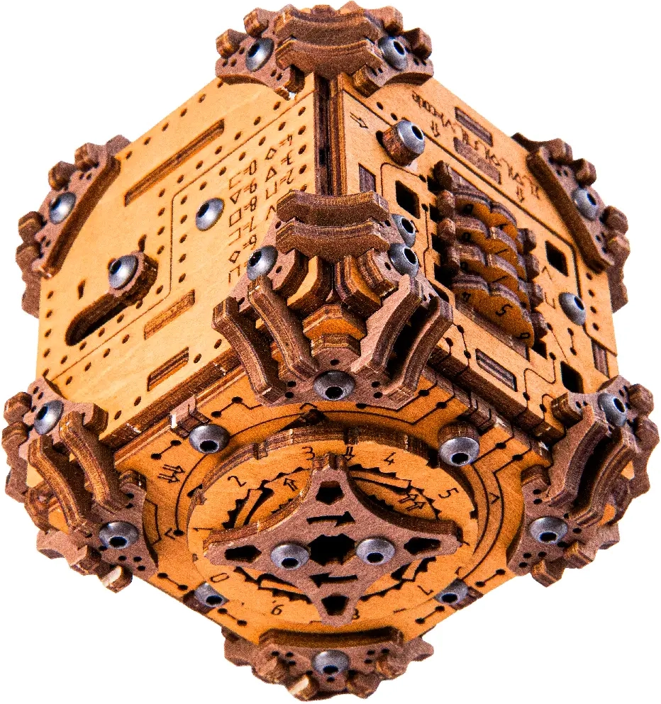 Le puzzle 3D en bois Tesserakt est à la fois un défi esthétique et logique. Assemblez le cube mécanique à partir de 195 pièces découpées avec précision et partez à la découverte de ses mécanismes secrets. Aucune force – seulement de la finesse et des étapes réfléchies – ne vous mèneront à l’ouverture de la cachette dissimulée.
