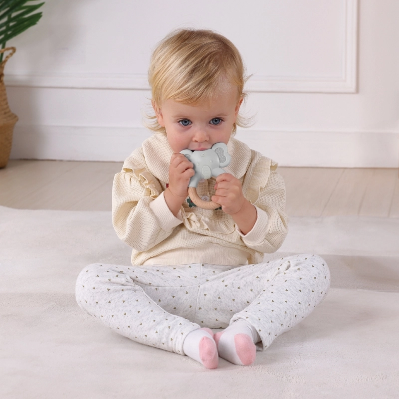 Tous les éléments sont conçus pour les petites mains : livre en tissu doux pour les premières manipulations, boîtes magiques avec foulards pour une exploration sans fin, anneau de dentition en silicone sûr pour soulager lors des poussées dentaires, balles sensorielles aux textures variées pour les sensations tactiles et tambour rotatif avec couleurs et miroir pour une fascination visuelle.