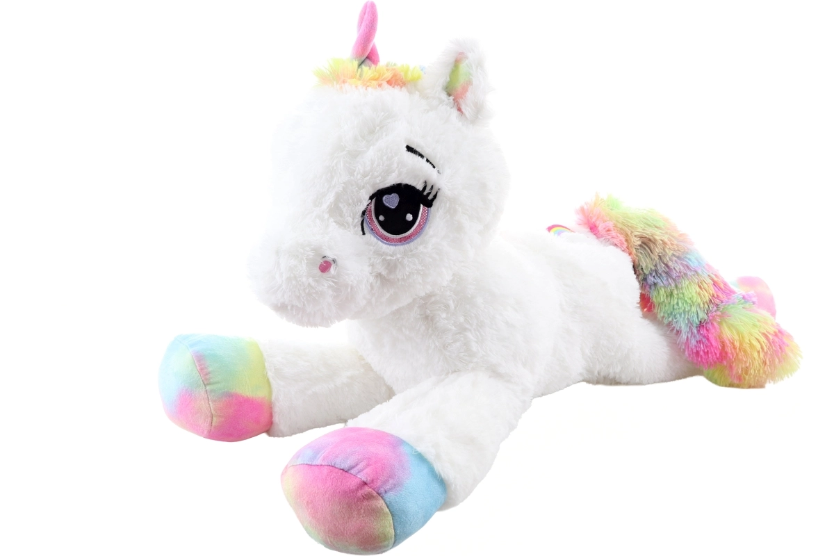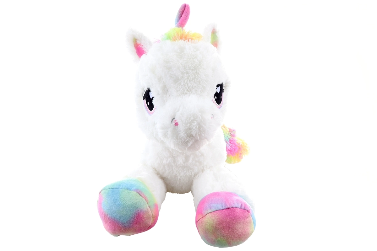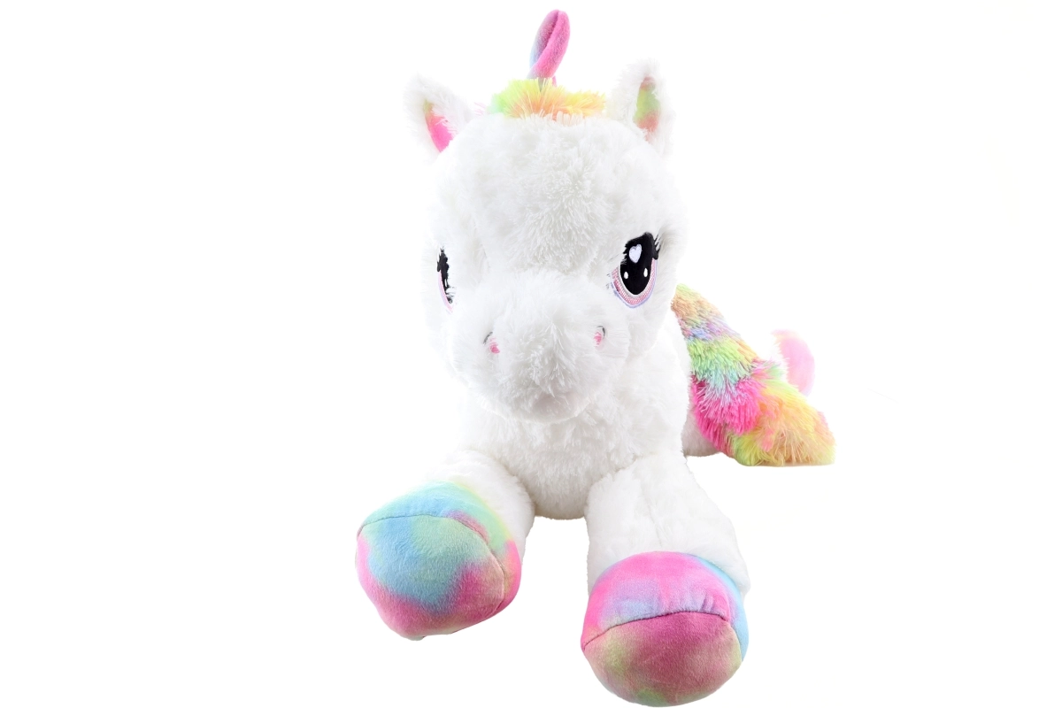 Adorable licorne en peluche de 80 cm qui ravira enfants et adultes. Elle est extrêmement douce, agréable au toucher et idéale pour câliner. Les détails arc‑en‑ciel donnent au jouet une allure magique, et les grands yeux brodés ainsi que la finition soignée garantissent une utilisation sûre dès 0+.