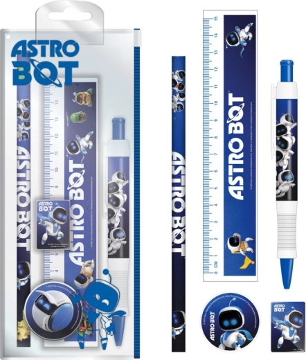 Pratique set scolaire sous licence Astrobot contenant tout le nécessaire pour écrire et mesurer. Dans un étui compact en plastique, vous trouverez une règle de 15 cm, un , une gomme, un stylo bille et un crayon HB – idéal pour l’école comme pour les déplacements.