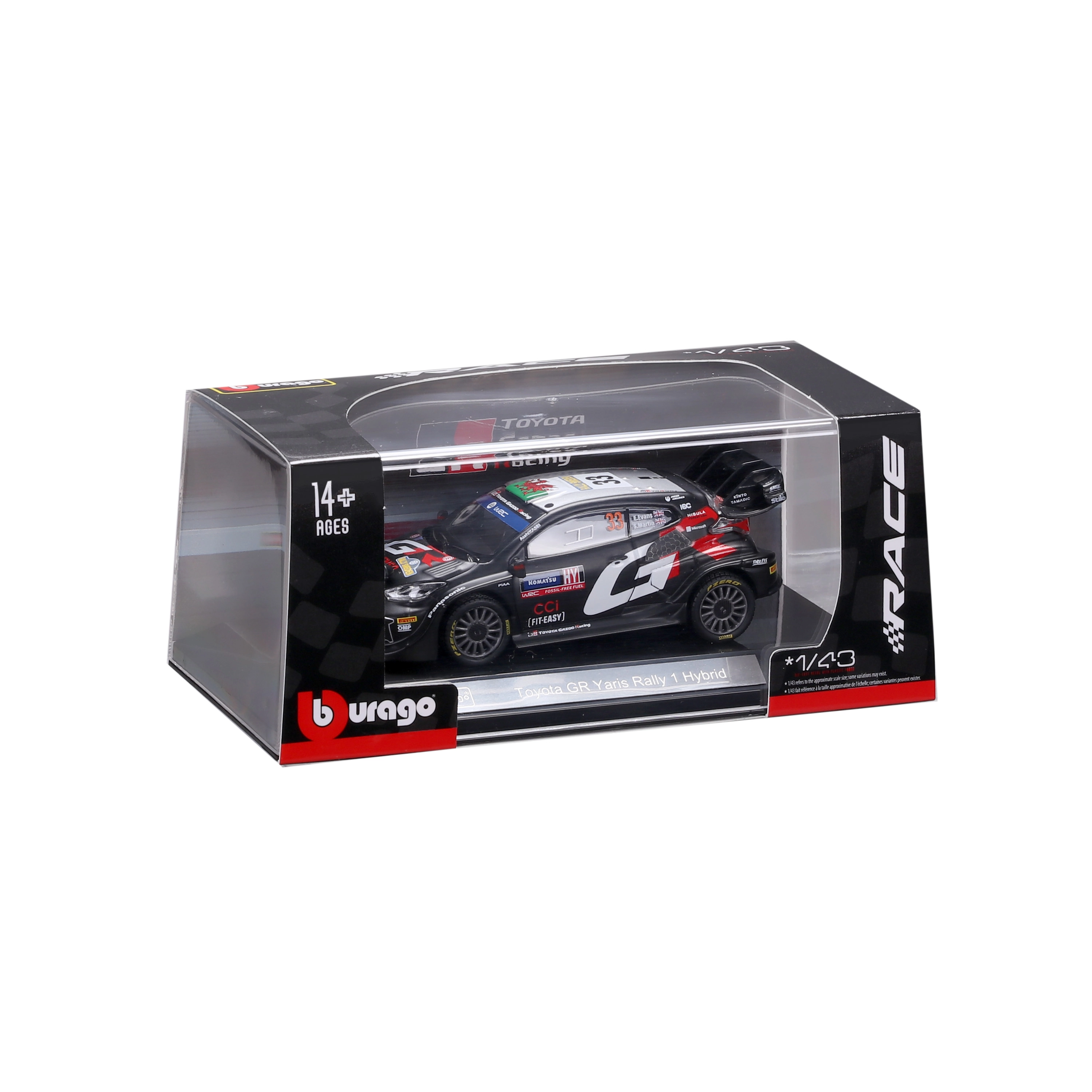 Profitez de l’ambiance du rallye mondial avec ce modèle de collection détaillé Bburago à l’échelle 1:43, qui reproduit fidèlement la Toyota GR Yaris Rally1 Hybrid portant le numéro 33 aux couleurs de TOYOTA GAZOO Racing. Le modèle se distingue par des éléments réalistes tels que phares de rallye additionnels, grand aileron arrière et marquages d’équipe précis.