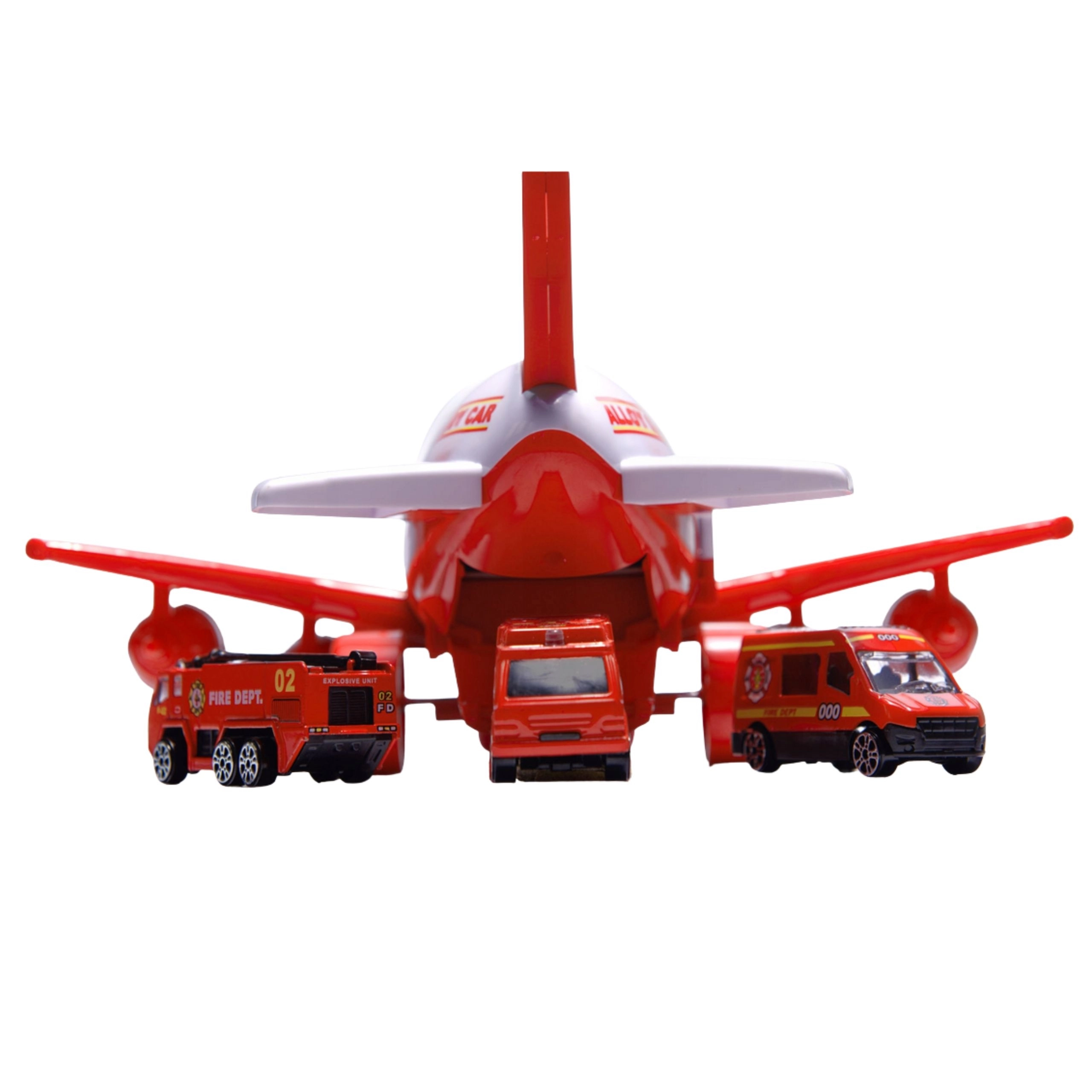 Éveillez l’imagination des enfants avec l’avion de pompier WOOPIE, qui fait office de transporteur pratique pour mini véhicules. Le fuselage et les portes latérales ouvrants permettent un déploiement rapide des équipes, tandis que la rampe rabattable facilite le déchargement des voitures. Quatre boutons déclenchent des sirènes réalistes et des LED clignotantes, pour une action plus vraie que nature.