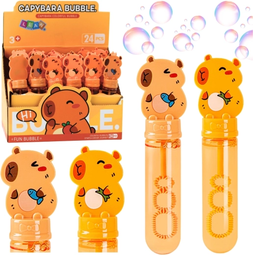 Vous cherchez un jouet simple et amusant pour les enfants ? Le flacon de bulles avec son adorable bouchon en forme de capybara offre des couleurs intenses, une utilisation facile et un maximum de joie à chaque souffle. Le tube transparent renferme une solution de qualité qui forme de grosses bulles résistantes.