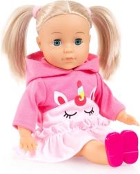 La poupée Emma est une excellente compagne pour chaque petit·e soignant·e. Elle a des traits délicats, de longs cheveux blonds et un corps souple et confortable, parfait pour les câlins. En appuyant sur son ventre, elle parle tchèque, chante et récite – jusqu’à 100 phrases et mélodies différentes pour un jeu varié et l’apprentissage de nouveaux mots.