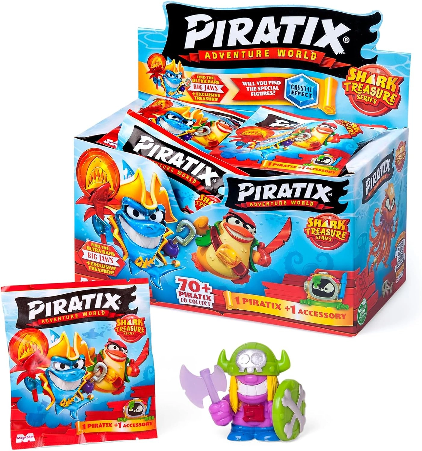 Plongez dans l’univers d’aventure Piratix Adventure World – Shark Treasure, où vous attendent trésors cachés, duels de pirates et suspense à chaque pas. Chaque sachet contient une figurine surprise et un accessoire thématique, ce qui en fait une pièce de collection idéale pour les petits explorateurs.