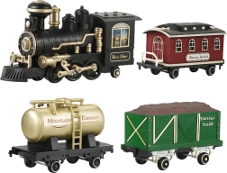Cette voie ferrée électrique au design classique de locomotive à vapeur ravira les petits comme les grands passionnés de chemin de fer. Après ajout d’eau, la locomotive produit une fumée réaliste, accompagnée de lumières et de sons, pour une expérience proche du réel. Le pilotage RC 2,4 GHz assure un signal stable et une conduite fluide avec choix du sens et régulation de la vitesse.