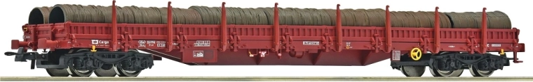 Wagon plat à quatre essieux de type Res de la marque Roco, fidèlement reproduit d’après l’exploitation du transporteur ČD Cargo. À l’échelle H0 (1:87), il propose un chargement réaliste de bobines/rouleaux de fil, des montants pivotants et des rampes latérales de chargement amovibles. Le modèle est prévu pour DC analogique, correspond aux époques V–VI et mesure 229 mm.