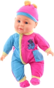 Adorable bébé au corps souple qui, lorsqu’on le presse, émet des sons de rire, de pleurs et les mots mama, tata. Il est vêtu d’un pyjama coloré à fermeture velcro, facile à retirer. Idéal pour les enfants dès 3 ans et parfait pour développer l’imagination et le sens des soins.