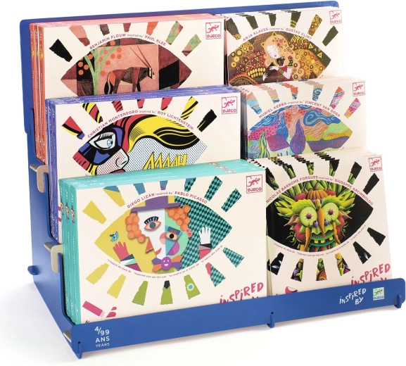 Ce présentoir est conçu pour une mise en valeur élégante des produits de la collection artistique DJECO Inspired By. Il offre une disposition nette et attrayante qui souligne le design et les couleurs de chaque article et favorise leur vente.