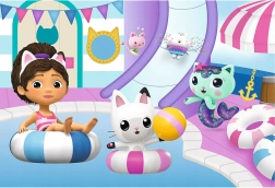 Découvrez l’adorable univers des héros du dessin animé Maison de Chat de Gabby avec les puzzles pour enfants Trefl. Les grandes pièces solides en carton épais tiennent bien en main et se placent facilement. Les illustrations aux couleurs vives attirent l’attention au premier regard et le motif « Gabby à la piscine » apporte une ambiance estivale et beaucoup de joie.