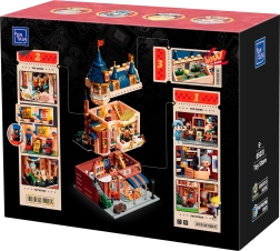 Le bâtiment se compose de trois étages facilement séparables : rez-de-chaussée – magasin de jouets avec modèles miniatures et expositions, 1er étage – salon de jeux rétro avec bornes d’arcade et jeux de société, et terrasse sur le toit avec pavillon pour se détendre. Quatre minifigurines animent des scènes du quotidien – vendeur, clients et enfants.