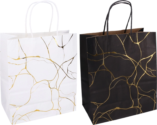 Sac cadeau élégant en papier kraft taille M (15 × 21 × 8 cm) pour une utilisation toute l’année. Idéal pour les petits cadeaux, les cosmétiques ou les accessoires. Matériau de qualité et anses solides pour un transport confortable et sécurisé. Disponible en deux variantes de couleur – noir et blanc.