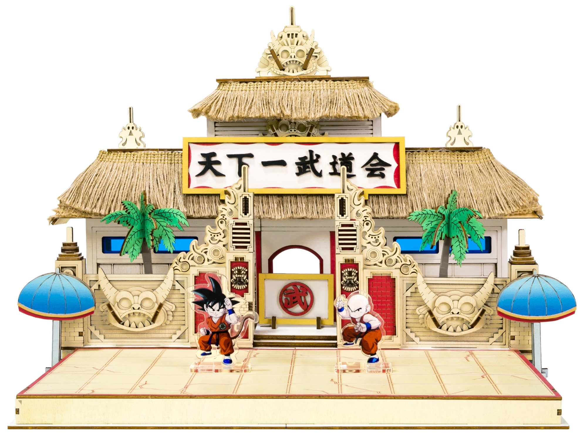 Ce set DIY sous licence retranscrit l’atmosphère du légendaire Tournoi mondial d’arts martiaux directement chez vous. Assemblez une scène authentique du Tenkaichi Budokai avec ses éléments architecturaux caractéristiques et sa décoration. Grâce aux figurines acryliques des personnages emblématiques, vous pouvez recréer des moments et combats iconiques de l’anime DRAGON BALL.