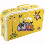 Découvrez la magie de la valise enfant avec le motif de Krtek et son petit train. Cette valise est fabriquée en carton de qualité avec du papier imprimé, captivante par ses couleurs vives. Grâce à l'attache en métal et la poignée pratique, elle est facilement transportable, parfaite pour un usage quotidien.