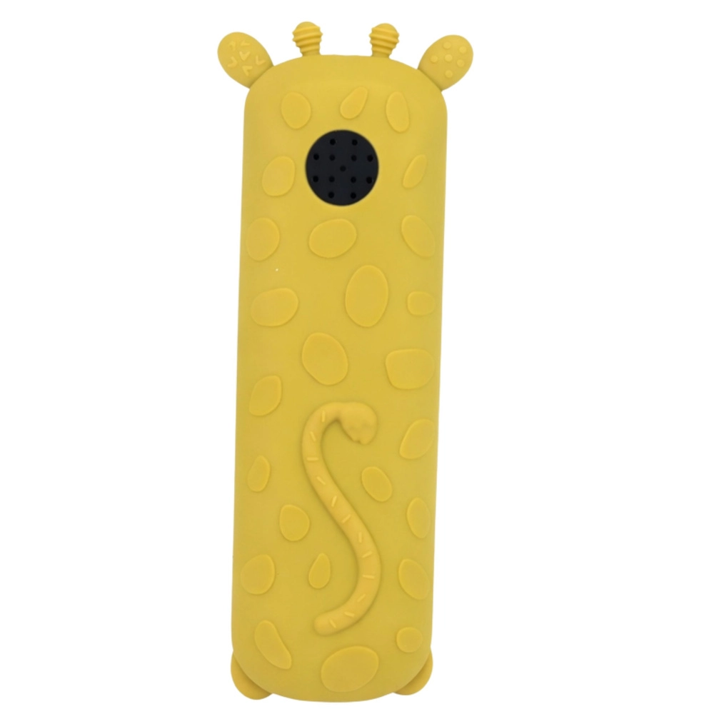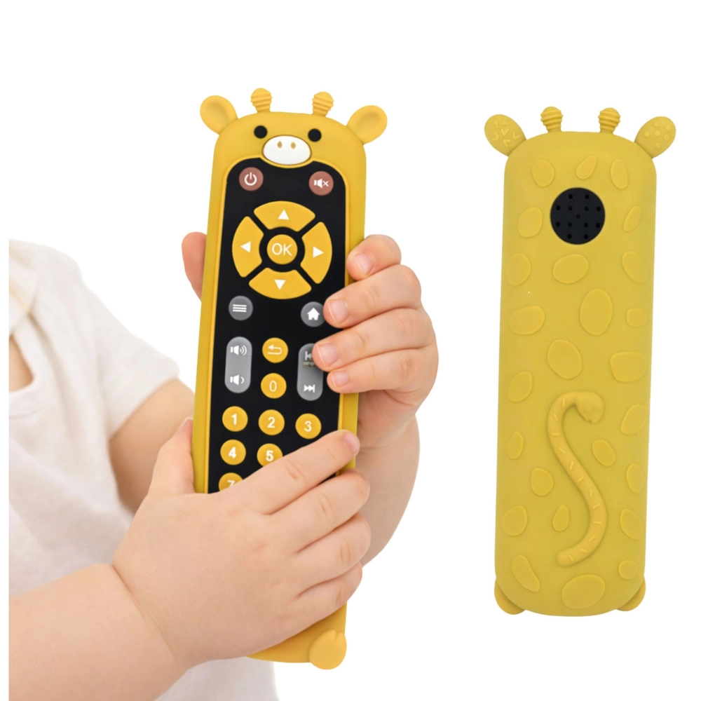 Adorable télécommande interactive en forme de girafe, idéale pour les bébés dès 6 mois. Elle propose des effets lumineux, des mélodies et des sons, l’apprentissage des chiffres et des mots en 3 langues (EN/FR/ES) et comporte un anneau de dentition en silicone souple pour soulager lors des poussées dentaires. Des matériaux sûrs ABS + silicone, sans BPA, des bords arrondis et des impressions durables favorisent le développement sensoriel et la coordination œil-main.