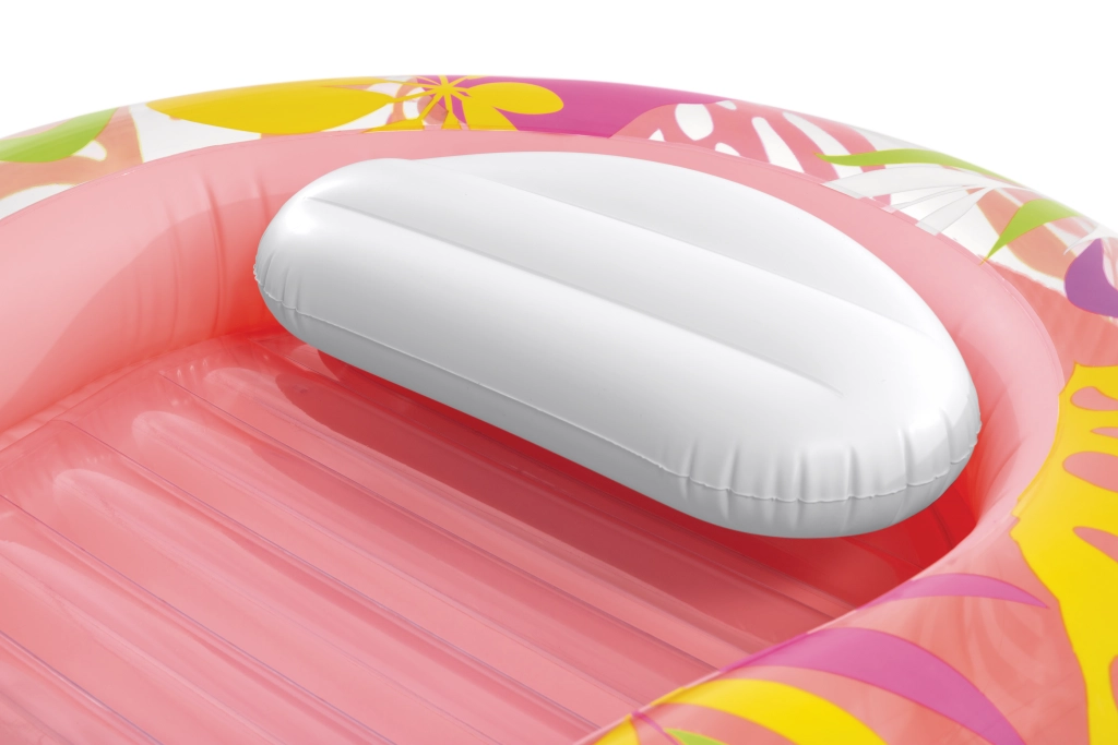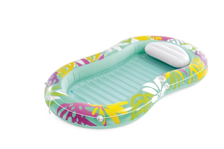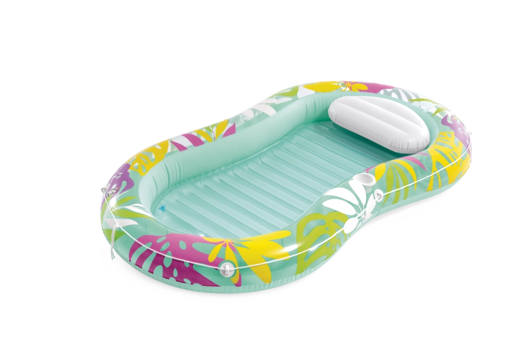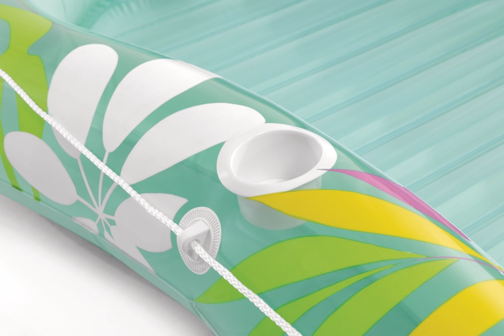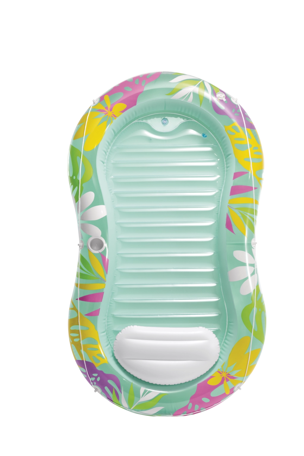 Profitez d’une détente sans souci sur l’eau avec le matelas Tropical Oasis – l’accessoire estival stylé. Il offre un oreiller intégré, une surface de couchage à reliefs pour un confort accru et un rebord surélevé et robuste pour une meilleure stabilité. Le motif tropical aux couleurs vives apporte une touche de fraîcheur à votre piscine et, grâce à la valve de gonflage rapide, le matelas se prépare et se range en un clin d’œil.
