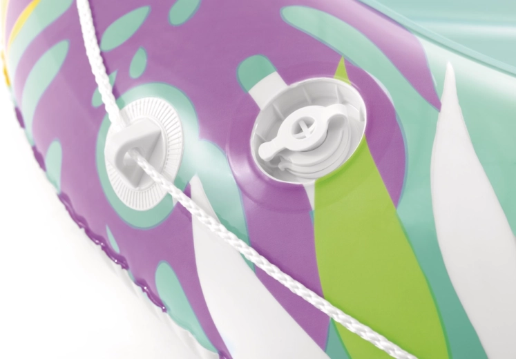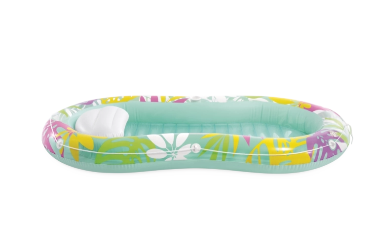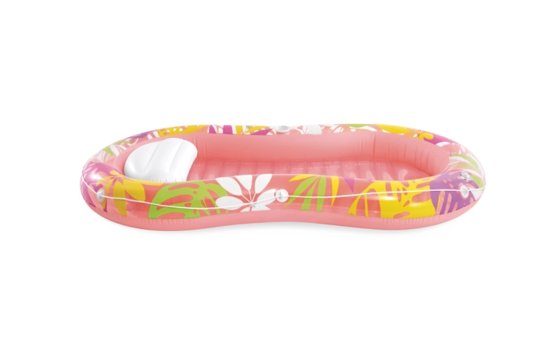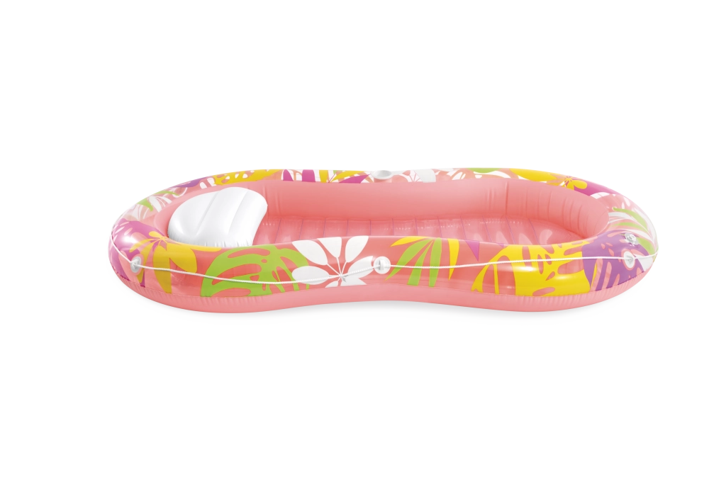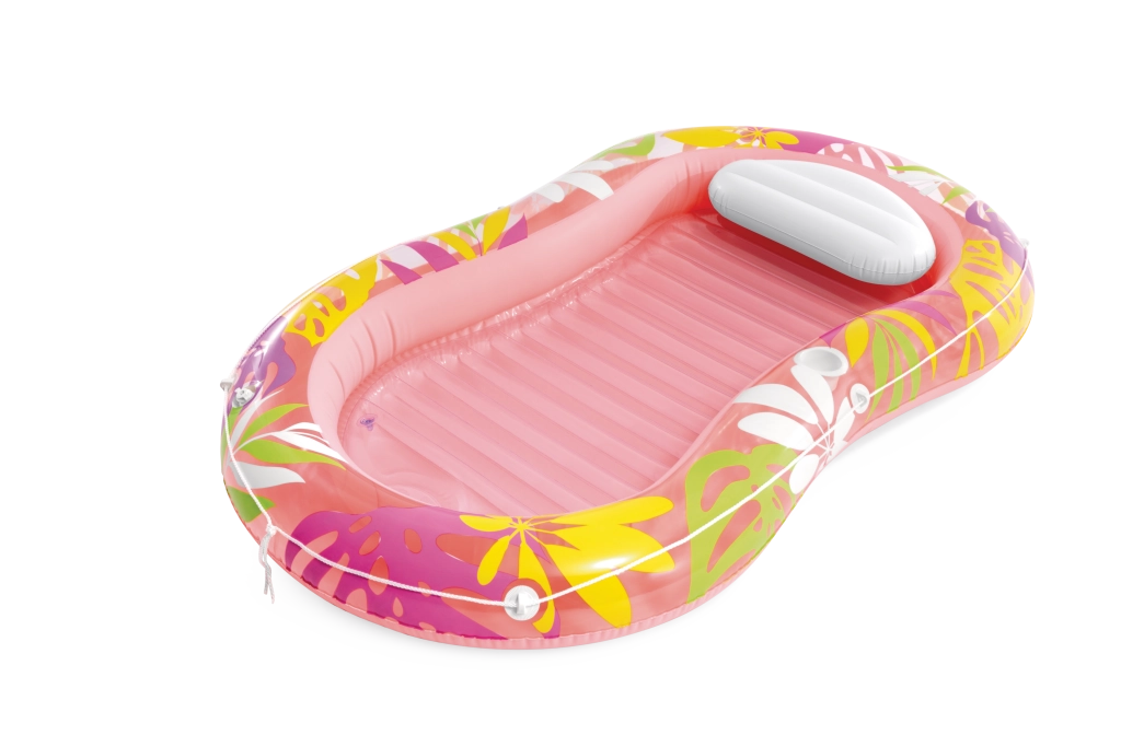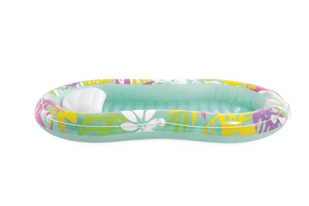 Profitez d’une détente sans souci sur l’eau avec le matelas Tropical Oasis – l’accessoire estival stylé. Il offre un oreiller intégré, une surface de couchage à reliefs pour un confort accru et un rebord surélevé et robuste pour une meilleure stabilité. Le motif tropical aux couleurs vives apporte une touche de fraîcheur à votre piscine et, grâce à la valve de gonflage rapide, le matelas se prépare et se range en un clin d’œil.