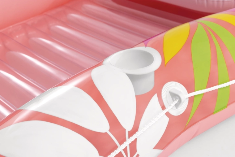 Des détails pratiques, comme le porte-boisson latéral et la corde de prise tout autour, facilitent la manipulation et augmentent le confort de repos. Le matériau PVC résistant se nettoie facilement et convient à la piscine, au lac comme à la mer. Grâce à ses dimensions compactes une fois dégonflé, le matelas se transporte et se range aisément.