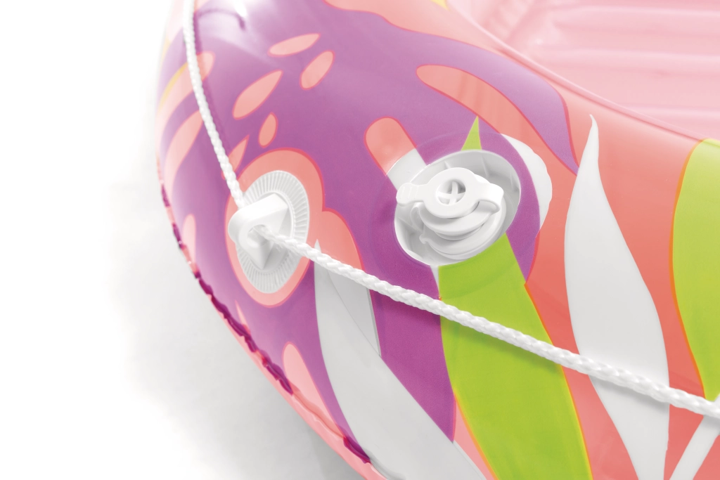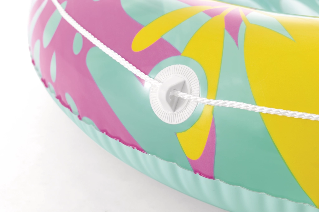 Apportez une touche de fraîcheur à la piscine avec un imprimé vitaminé. Le porte-boisson latéral et la corde de prise périmétrique facilitent la manipulation et la détente.