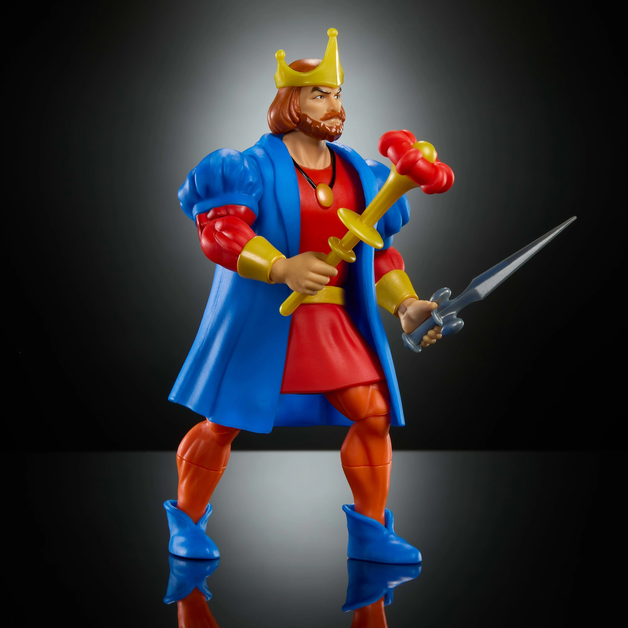 Grâce à 16 points d’articulation et à des pièces interchangeables, vous pouvez placer le roi dans des poses d’action, héroïques ou de collection. L’épée et le sceptre inspirés de la série sont accompagnés d’un mini-comics qui enrichit l’histoire et ravira petits et grands fans.