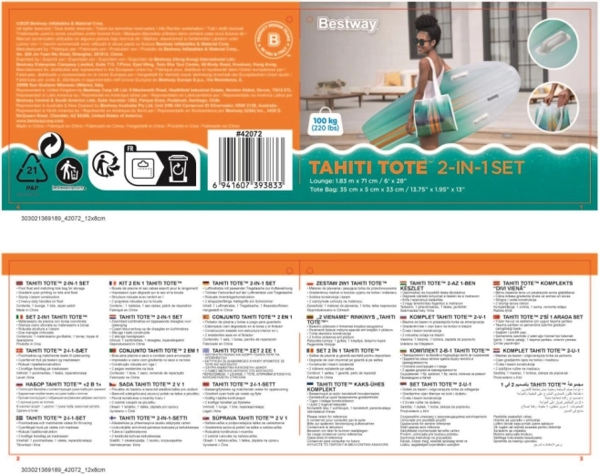 Profitez pleinement de l’été avec le set BESTWAY TAHITI 2‑en‑1 – un matelas gonflable confortable avec poignées robustes et un grand sac de plage au design assorti. Sa structure à boudins I‑beam, son gonflage rapide via une seule chambre à air et sa capacité de charge jusqu’à 100 kg en font un choix idéal pour la piscine, le lac ou la mer.