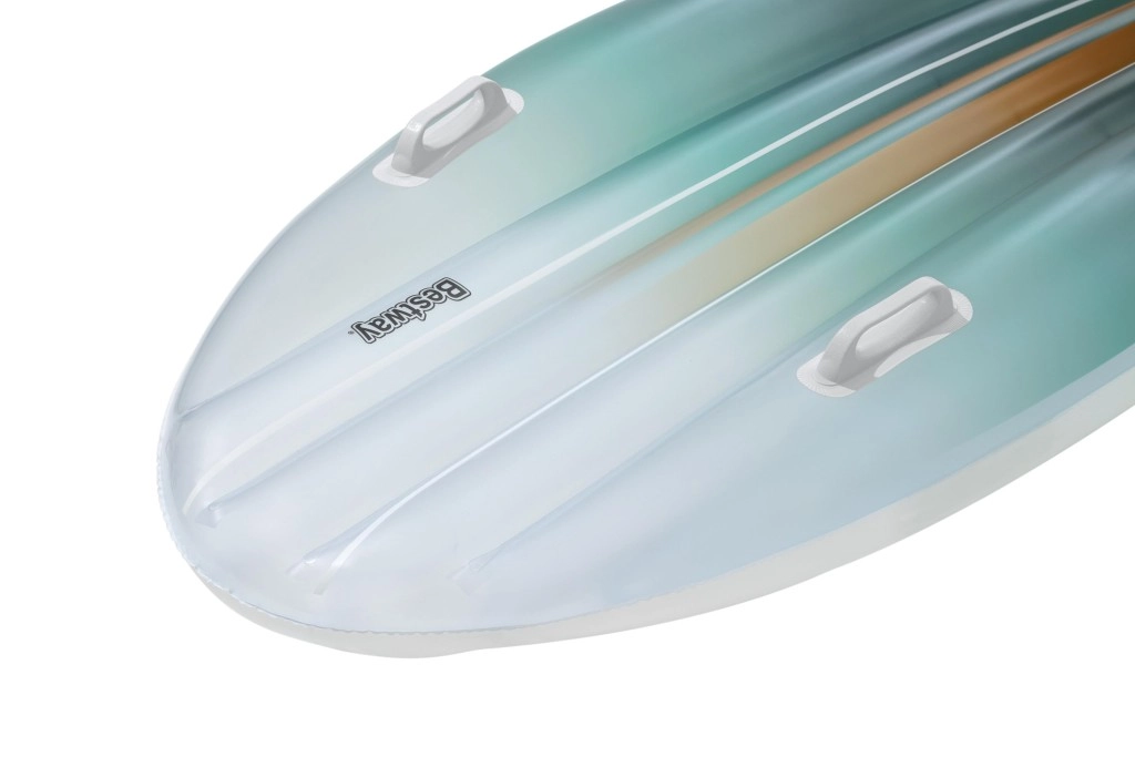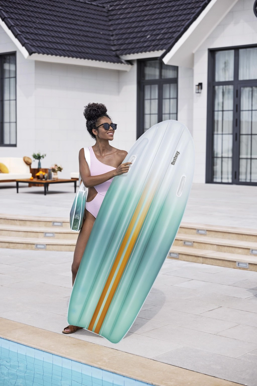 Le set BESTWAY TAHITI allie praticité et style pour une détente parfaite au bord de l’eau. Le matelas au profil hydrodynamique et doté de deux poignées intégrées offre assurance lors de l’embarquement comme pendant la relaxation. L’imprimé dégradé cyan assorti sur le matelas et le sac apporte une touche fraîche et estivale pour se démarquer à la piscine comme sur la plage.