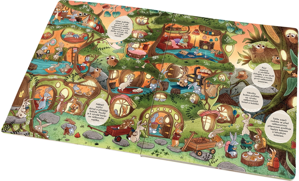 À chaque page, les enfants découvrent plusieurs œufs de Pâques avec de courts textes, des tâches et de petits défis. Le livre est ainsi idéal pour la lecture partagée comme pour l’exploration autonome.