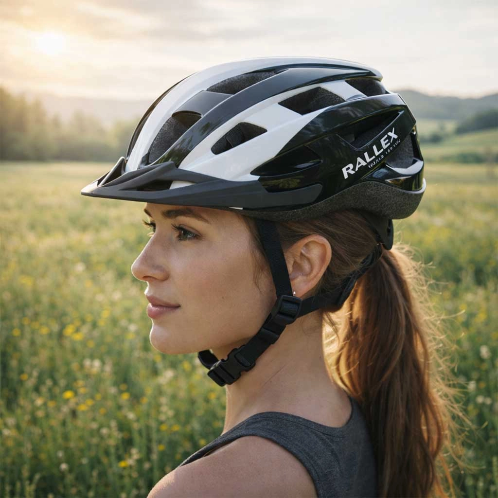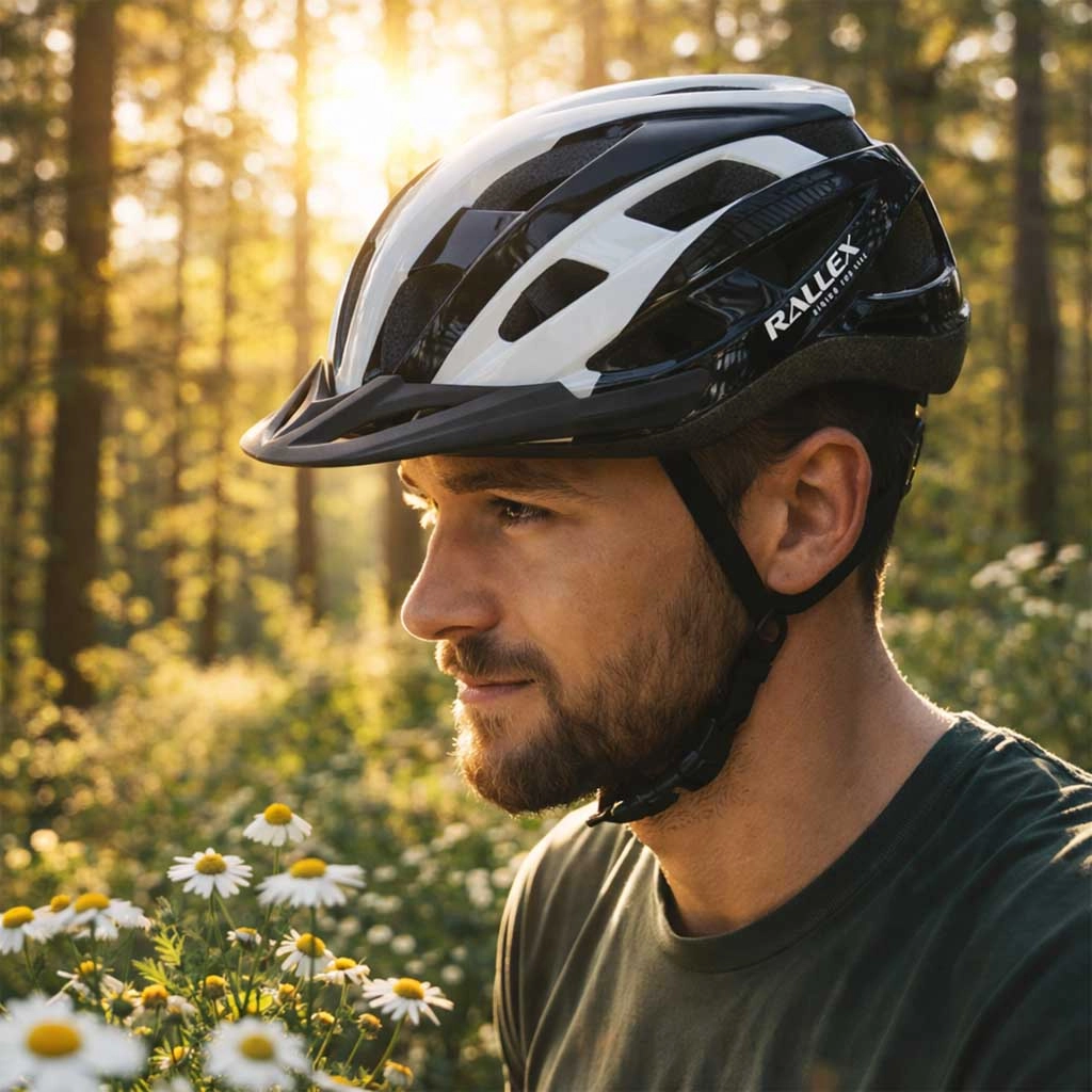 Casque de cyclisme RALLEX avec réglage, noir et blanc, taille L (58–62 cm)