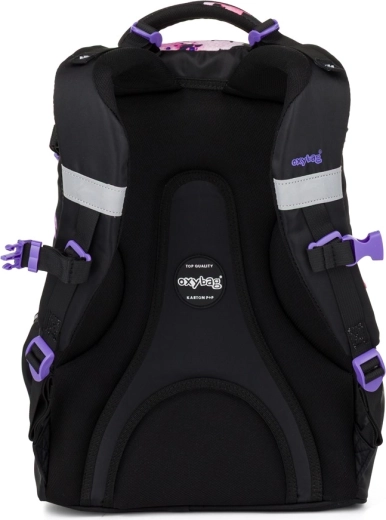 Le sac à dos scolaire OXY Ombre Flowers est conçu pour un port quotidien confortable dès la 3e classe. Grâce à son panneau dorsal ergonomique (longueur 43 cm) et à ses bretelles d’épaules souplement rembourrées, il s’adapte parfaitement au dos des enfants. La sangle de poitrine réglable maintient les bretelles en place, tandis que le fond rigide et stable empêche le renversement et protège le contenu.