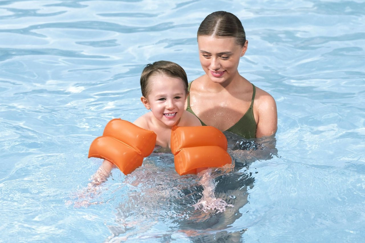 Accompagnez les premiers pas dans l’eau avec les brassards BESTWAY pour enfants. Leur couleur orange assure une excellente visibilité, tandis que le design à deux chambres améliore la stabilité et la flottabilité. Idéals pour la piscine, le lac ou la mer, ils aident les enfants à développer leur confiance lors de l’apprentissage des techniques de natation.