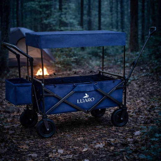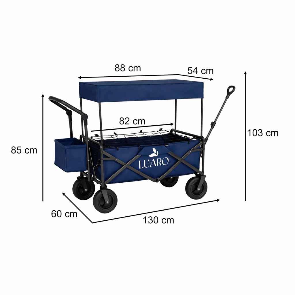 Avec le chariot LUARO, vous obtenez un assistant fiable pour les sorties en famille, les journées à la plage et le camping. Le cadre en acier robuste et le tissu Oxford 600D durable garantissent stabilité et longue durée de vie, tandis que les grandes roues tout-terrain franchissent sable, herbe et pavés. Vous pouvez tirer ou pousser le chariot, et grâce aux poignées réglables en hauteur, il s’adapte confortablement à votre taille.