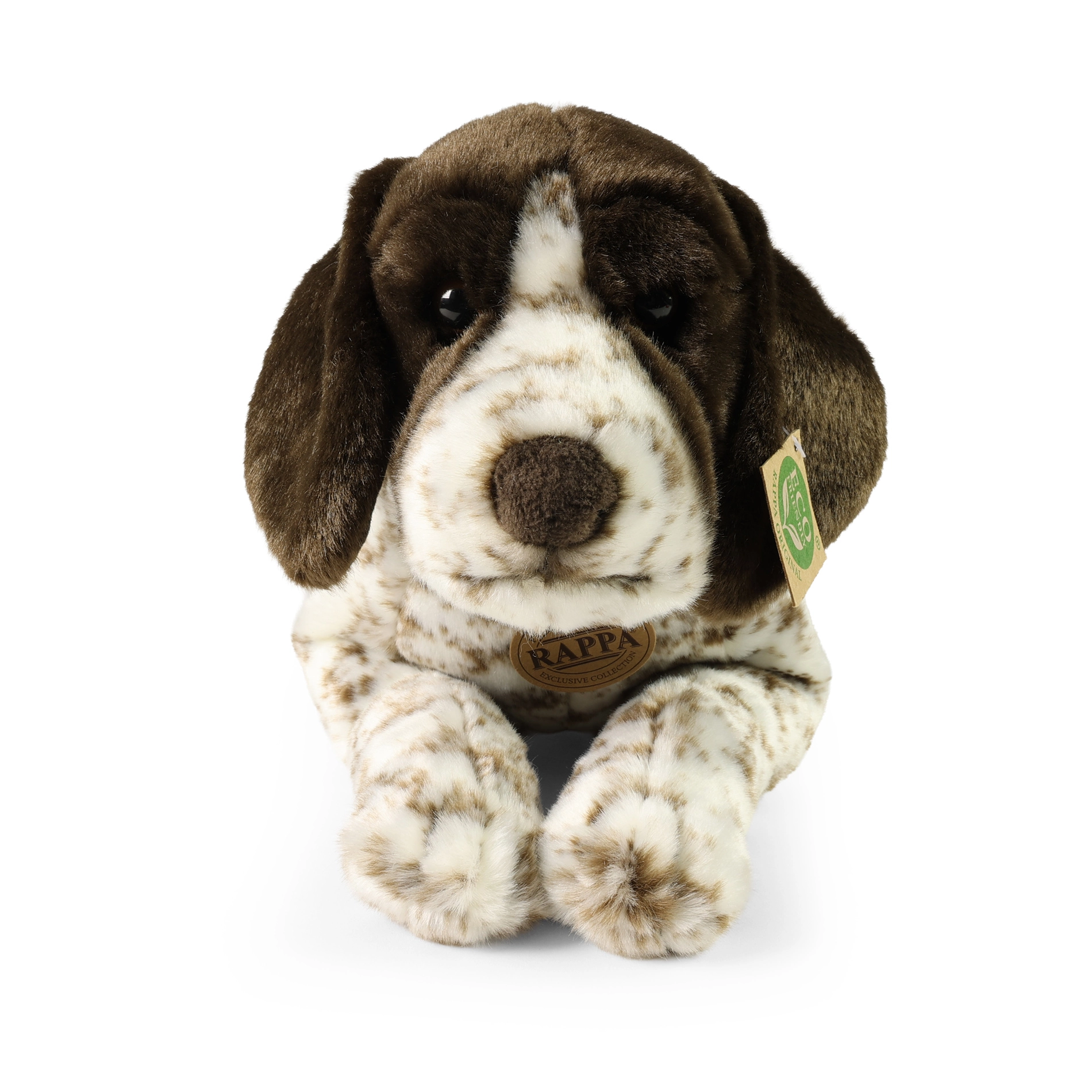 Adorable chien en peluche de race braque allemand d’une longueur de 43 cm, fabriqué en peluche toute douce et appartenant à la collection exclusive Rappa. Grâce au travail artisanal, il paraît réaliste, est sécurisé dès la naissance et son garnissage éco en matériaux recyclés préserve la nature.